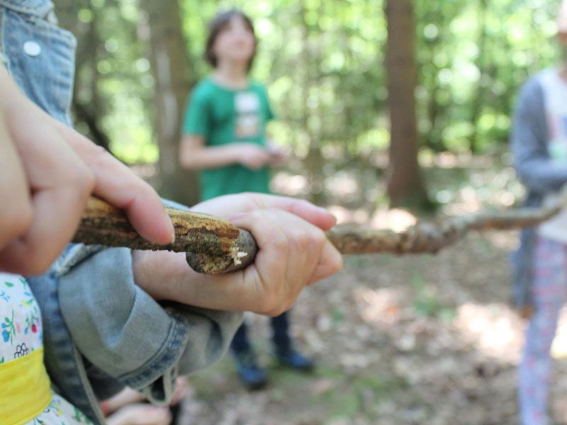 Unterschiedliche Waldtage und das Waldmobil bieten den Kindern die Möglichkeit in spielerischer Form und mit direktem Zugang den Wald kennenzulernen. Die Wahrnehmung wird geschult und Naturkenntnisse werden mit allen Sinnen erweitert.